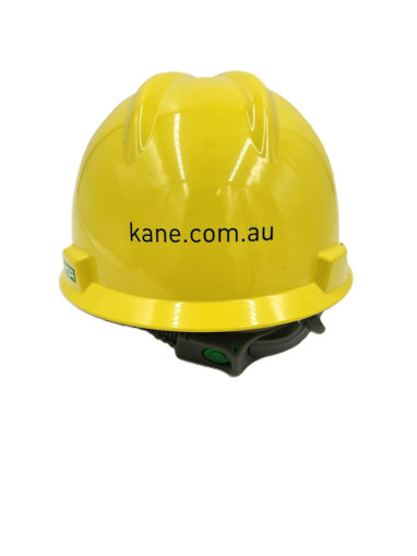 MSA Yellow hard hat 3 position branding Kane logo to front / Visitor to RHS / Website to back