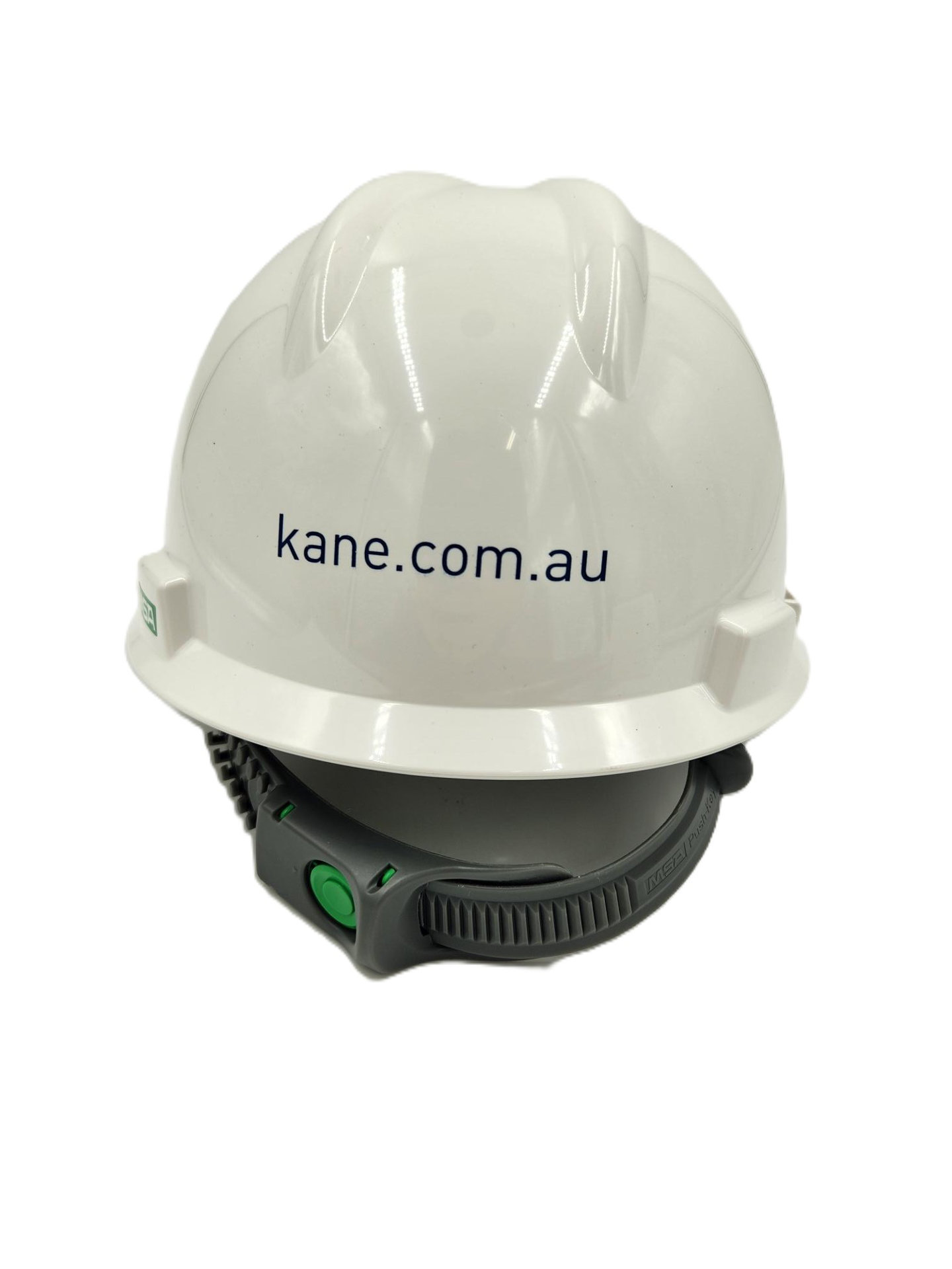 MSA White hard hat 2 position branding KPS logo to front / Website to back